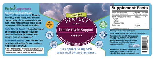 Female Cycle Support - 120 Capsules - A Blend of 4 Bovine Organ Glandulars