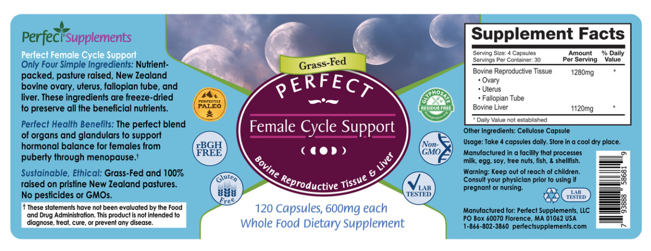Female Cycle Support - 120 Capsules - A Blend of 4 Bovine Organ Glandulars