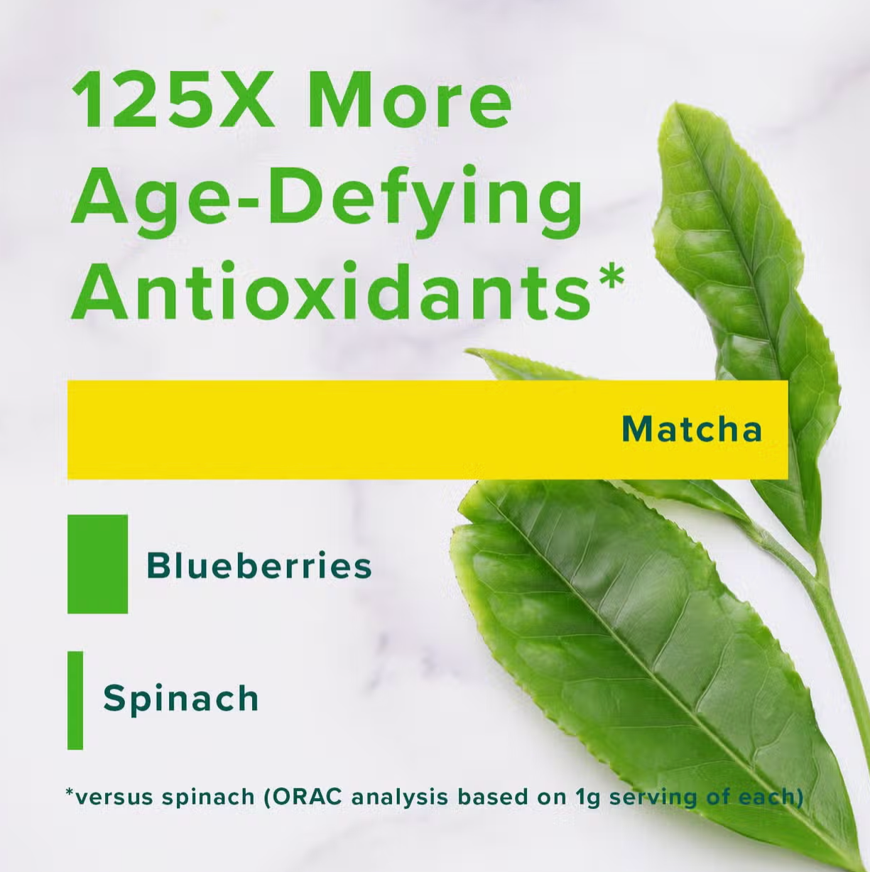 - 27mg of caffeine and L-Theanine, naturally occuring from matcha, boosts productivity, improves mental clarity and focus+
