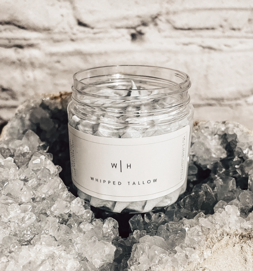 Grass fed beef tallow contains nourishing vitamins and essential fatty acids that are non-comedogenic, easily absorbed into the skin, and have been in use for centuries in natural skincare routines.