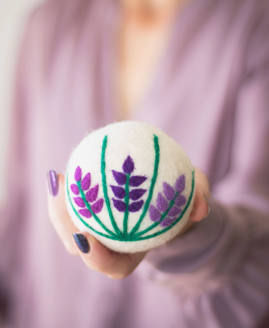 Each dryer ball is hand made and hand decorated and sets of 6 come with a hand printed organic cotton drawstring bag. The patterns are needle felted on to each ball by hand, using the same 100% New Zealand Wool as the balls. Our dyes are eco-friendly, certified azo-free, lead-free, and compliant with the German Safety Product Safety Act (ProdSG)