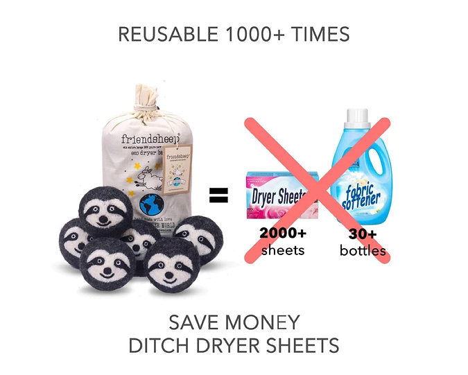 Ditch single-use dryer sheets and switch to a fun, reusable, plastic-free and toxin-free laundry with these adorable eco dryer balls. Friendsheep eco dryer balls are an all-natural and organic fabric softener handmade from 100% premium new Zealand wool.